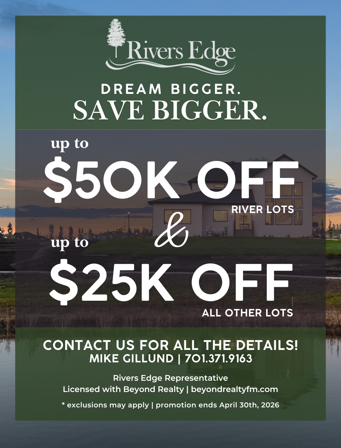 $20,000 off a new Dabbert Spring build! Up to $50,000 off river lots and $25,000 all other lots in Rivers Edge Development.