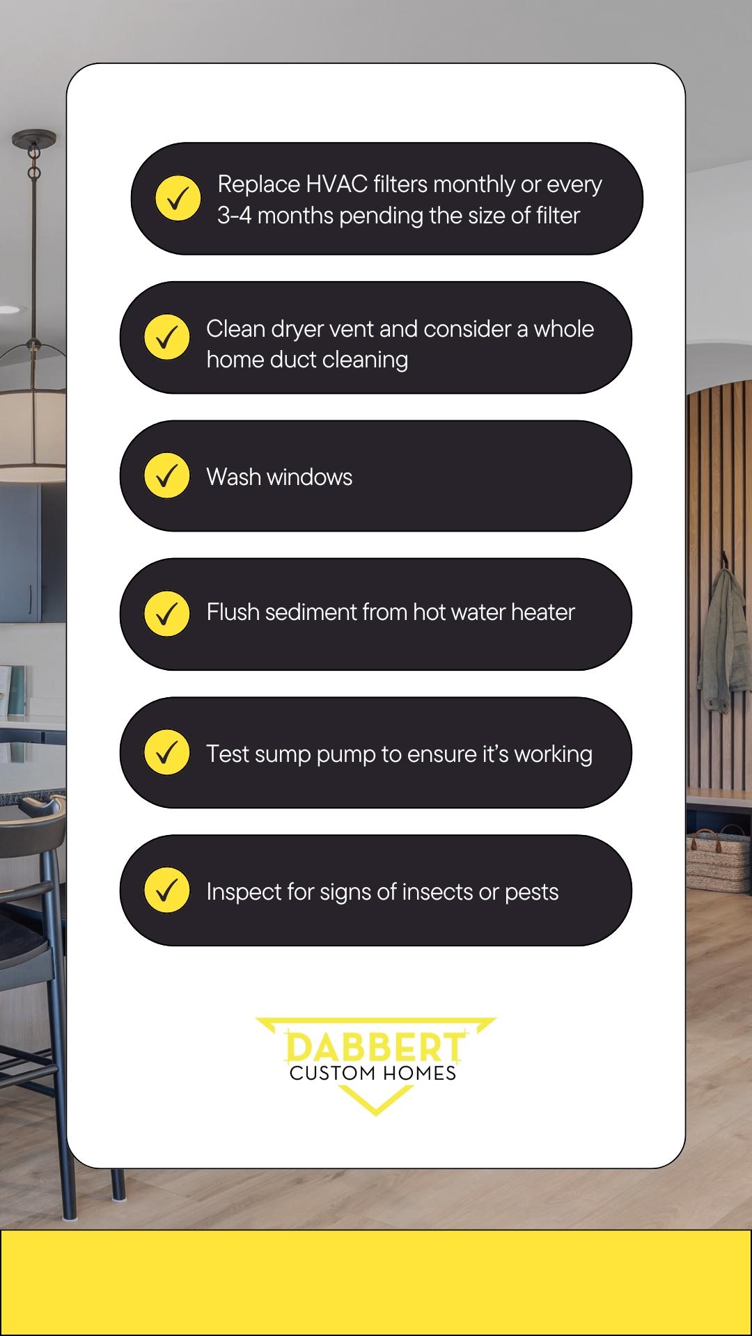 - Replace HVAC filters monthly or every 3-4 months pending the size of filter