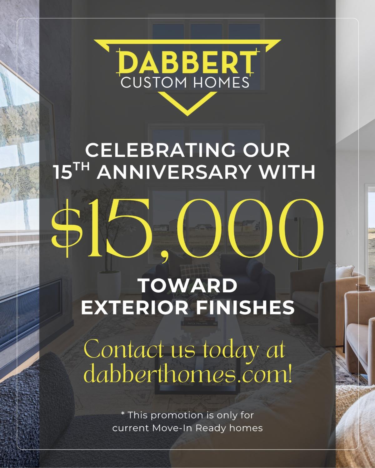 CELEBRATING OUR 15TH ANNIVERSARY WITH $15,000 TOWARD EXTERIOR FINISHES!